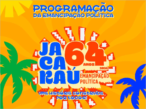 Continue lendo.Prefeitura de Jacaraú divulga programação oficial dos 64 anos de Emancipação Política